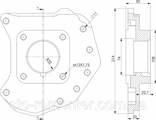 Плита перехідна на КПП Mercedes ACTROS G 125-9/16, G 135-16, G 155-16/11,9 (FINO A/UNTIL NR 206764), G 155-16/14,0 (FINO A/UNTIL NR 206764), G 155-9/16, G 180-16/11,9 (FINO A/UNTIL NR 206764), G 181-9, G 200-16/11,9 (FINO A/UNTIL NR 206764), G 210-16/14,2, G 221-9, G 240-16/11,7, G 255, G 260-16, G 260-16/9,75. Плита фіксує вал добору потужності в посадковому місці КПП